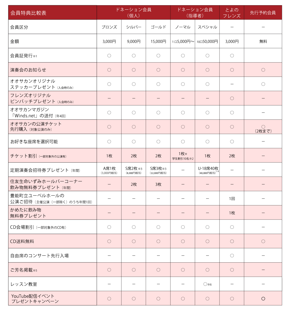 | ご芳名掲載※5 | ○ | ○ | ○ | ○ | ○ | ○ | - |