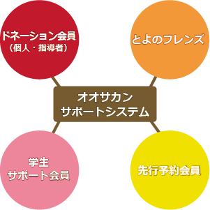 「寄付」を中心に据えた会員制度です。非営利団体であるオオサカンの活動内容にご賛同いただき、様々な形でサポートいただける方々を募集しております。それぞれの制度に応じたささやかな特典もご用意しておりますので、今後もより多くの皆様からの温かいご支援をお待ちしております。